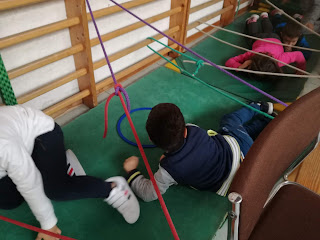 trasladar y ayudar al profe a mover colchonetas, bancos, cuerdas, lo que se